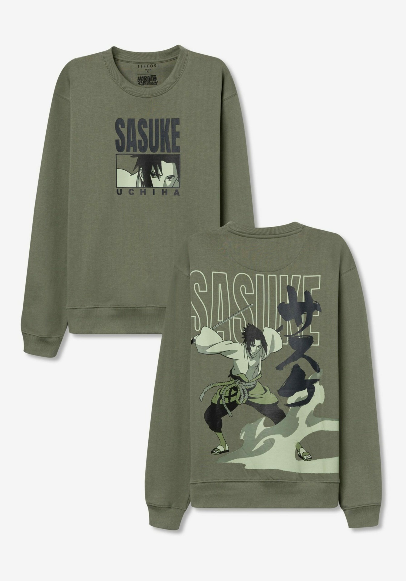 Sweat cardé à encolure ronde et manches longues. Impression recto et verso ©Naruto. Bordures côtelées.